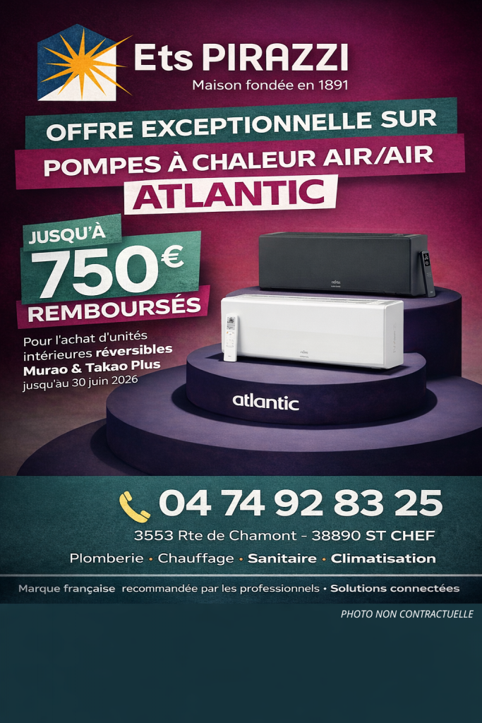 Du 1er avril au 30 juin 2026, profitez d’une offre exceptionnelle sur les pompes à chaleur Air/Air réversibles Atlantic.